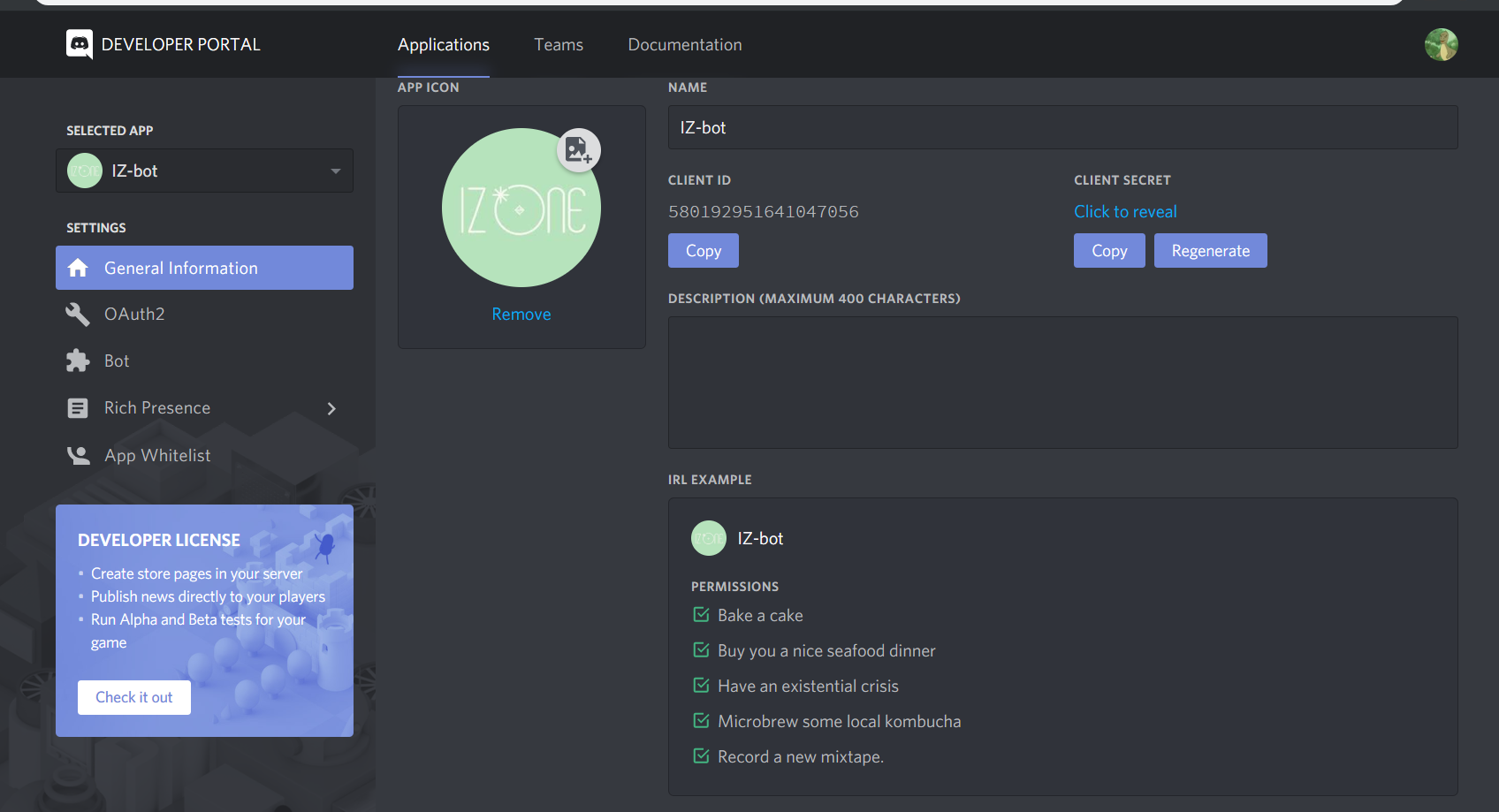 저는 IZ-bot 이라고 이름을 지었습니다.
